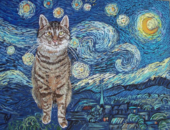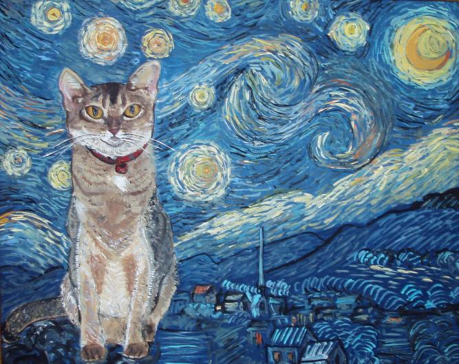 Starry Night Cat Black Pug Shih tzu Westie Foxhound Border Terrier